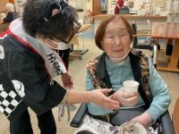 入居者様に鈴や鳴子を持って鳴らしてもらい