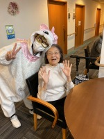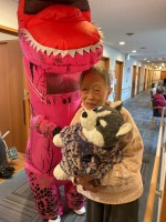 着ぐるみを見た途端、びっくりした入居者様の顔が