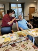 今回、102歳と100歳の入居者様が参加されていることに他の入居者様がびっくりされていて