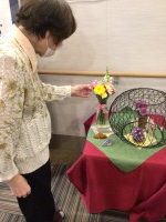正面玄関前のエントランスには季節の飾りや花が飾ってあります。