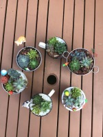 可愛らしいポットに多肉植物を寄せ植えです