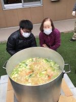 当日は手作りコンロに大きい鍋で具材を入れ調理します!