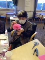 お風呂後に事務所前のお食事メニューを取りに来られた方に