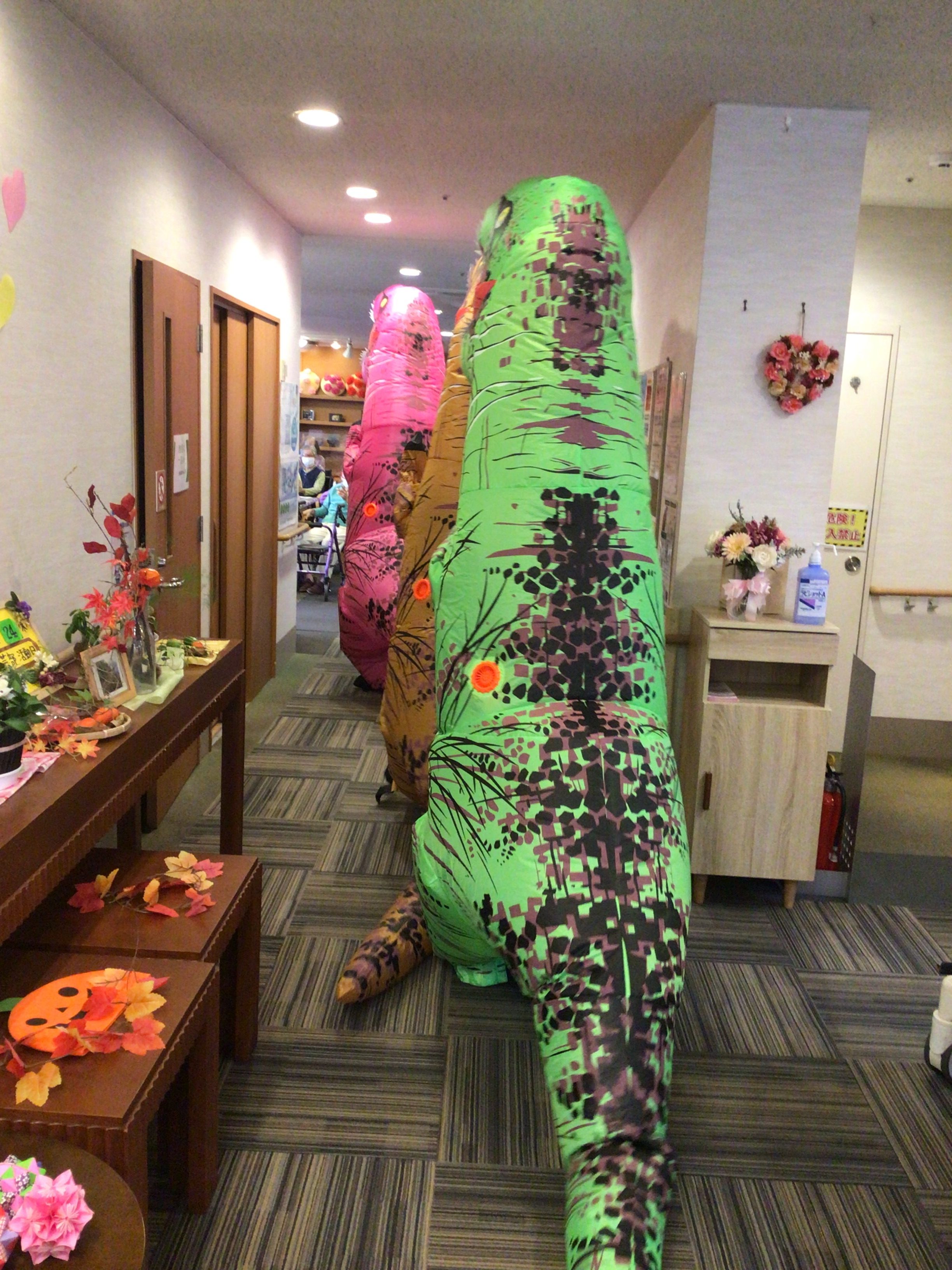 しかしこの恐竜とかぼちゃ、中はかなり暑かったようで