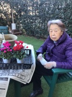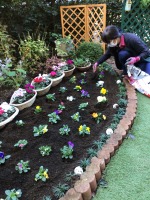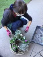 食堂から見える花壇にシクラメンなどの花を植えています。