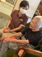 大事にぬいぐるみを抱かれてる入居者様が・・