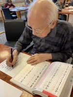 童謡のビデオを見ながらみんなで歌を歌っているグループもあり、