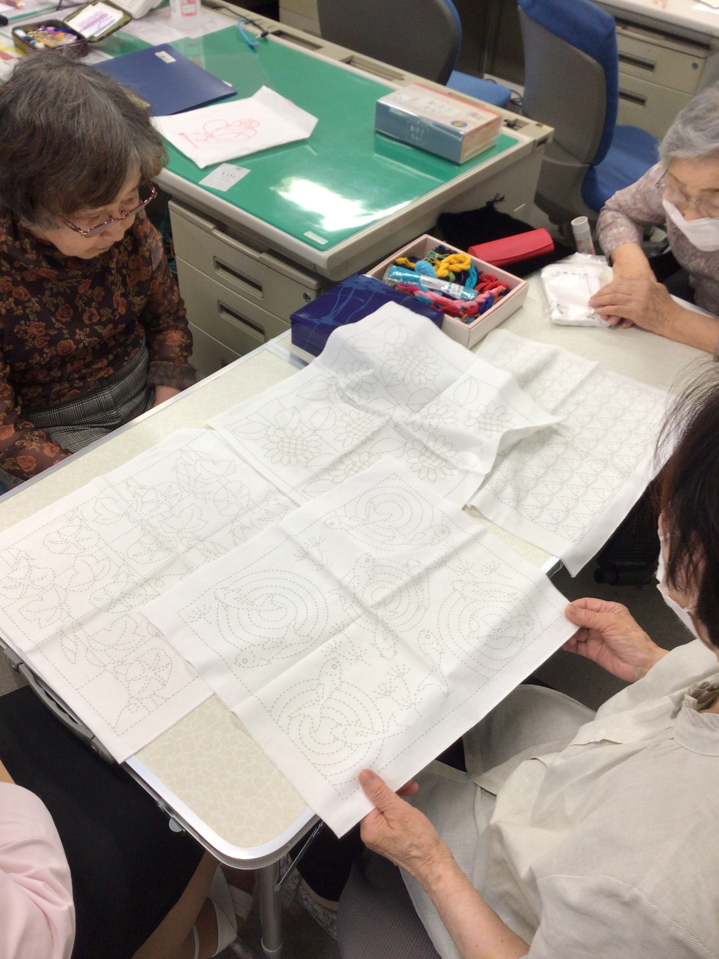 何色の朝顔にするか、ひまわりの周りを何色のステッチにするか