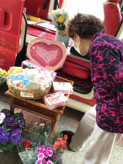 先日の、お花屋さんリリーさんによる移動販売のお写真です。