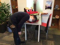 獅子舞に噛まれている園芸士さん!!