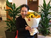 プレゼントのひまわりを持って