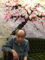 玄関前に貼ってある桜の前で