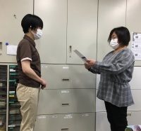 朝礼で表彰式を行いました。
