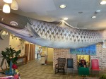 施設内飾りの、兜飾りが立派で目をひきます。