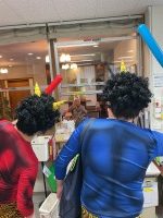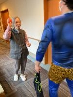 サッカー好きな入居者様がボールを蹴って鬼退治や