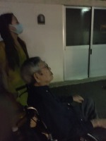 私は車いす置き場の狭い隙間へ隠れたつもりでしたが