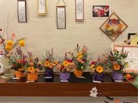 ハロウィーンを模した生け花とドライフラワーのアレンジメントでした☺
