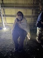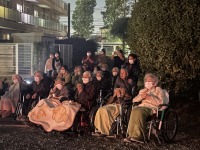 ダウンコートにひざ掛けにと暖かい恰好で外へ