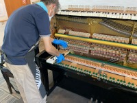 様々な場面で活躍するグランドピアノを大切に調律する姿