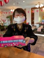先日もお声をかけていただいたので台から剥がし山折りで組み立てできるバスをお渡ししたところ