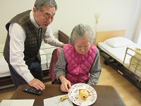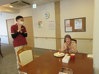 ご夫婦で入居されている方です。旦那様にもお祝いしていただき、笑顔がかわいいですね!おめでとうございました♡