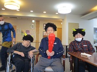 皆さん、鬼のかつらを楽しんでくださっています。