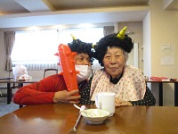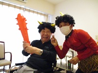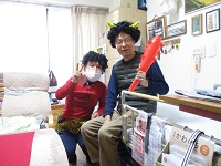 2/3に節分の豆まきをしています。甘納豆を豆の代わりに使っていただいています。