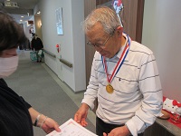 1月3日に開催しましたシーハーツ川口選手権の表彰式を行いました。2位のご入居者様はお顔ご紹介がNGの為、ご紹介はお二人となります。