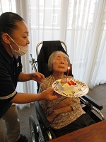 本日は、M様とS様のお誕生日です。M様はお好きなケーキ召し上がっていただいているご様子の写真を撮らせていただきましたが、S様は写真はお嫌との事で、プレゼントのケーキの写真としなってしまいました。