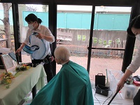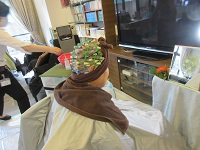 今日は理美容の日でした。念願のパーマをかけて喜ばれていました!とてもいい笑顔ありがとうございました。
