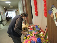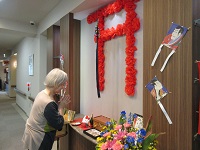 施設の玄関前のシーハーツ川口神社にお参りに来られています。おみくじを真剣に読まれていました。いい年になりますように!
