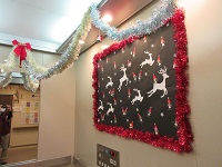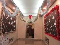クリスマスに向けてのエレベーターの中の飾りつけ、完成しました!