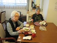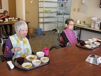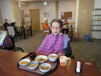 「今日の鶏肉は柔らかくて美味しい」と仰ってくださっていました。目をつぶってしまう方も職員の声掛けにご自分で召し上がっています。