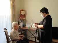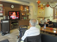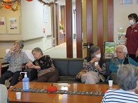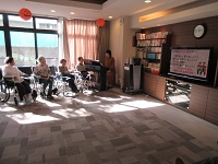 本日は、音楽療法の日です。本日の内容は、秋の歌を中心に合奏とハンドベルを使って、楽しまれておりました。