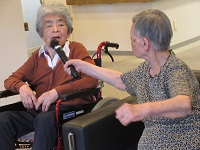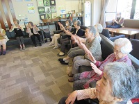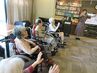ある方はお風呂を拒否されてまで音楽療法に参加されています。声を出したり鈴を鳴らしたり楽しまれていました。