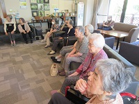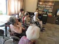 水曜日は、カラオケの日です。次回8/27の日曜日は夏祭りの為、カラオケはお休みになります。その為、いつもより多くのご入居者様に参加頂きました。