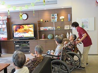 最近は、カラオケに参加される方が多くなっています。今日は席が無くて椅子を用意しました。