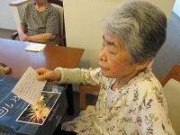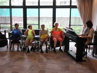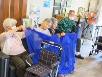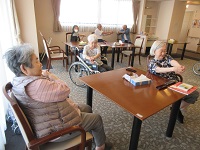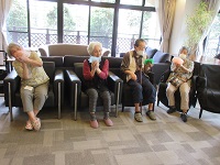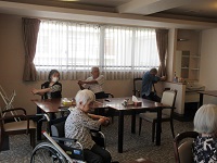 夕方の時間を使って、食事前の体操を皆さんでしています。入居されたばかりのI様も「なんでも参加するよ!」と体を動かしてくださっています。
