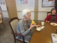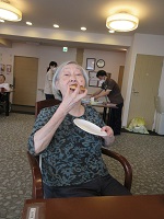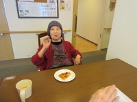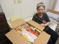 ご家族からプレゼントが届きましたので、居室をお持ちさせて頂き、箱を開けましたら、沢山のお菓子が入っておりました。その中から、今、召し上がりたいお菓子を何個か選んで頂き、かさばるものでしたので、共有部の保管庫に預からせて頂きました。