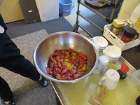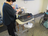 本日は、3階のご入居者様の焼肉イベントの日です。本日の焼肉は、パイナップルをいれてさらに柔らかくしてご提供させていただきました。焼肉の匂いがフロア全体に漂い早く食べたいと話されるご入居者様もおられました