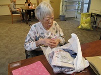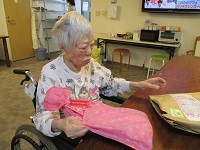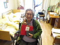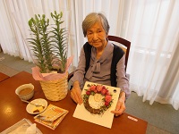 プレゼントが届きました!「あら、きれい」と喜ばれています。他の入居者の方々と「すてきねえ」と話されていました。
