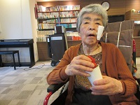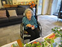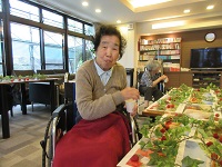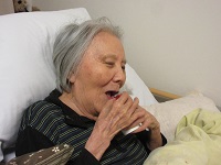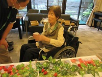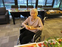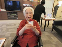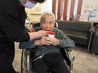 経管栄養の方にも潰してとろみをつけて召し上がっていただきました。「おいしい!おいしい!感謝感激!」と喜んでいただきました。最高の笑顔をいただきました。