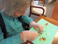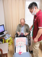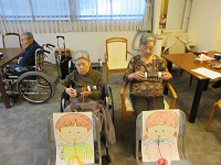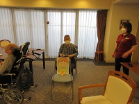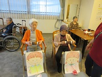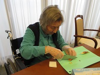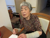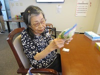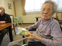 女性の入居者の方たちに、今日は白菜とみょうがで浅漬けを作っていただきました。