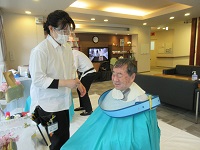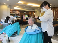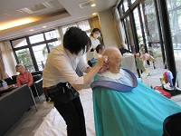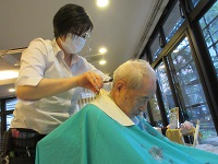 きょうは月に1度の理美容の日です。23名の方が利用され、皆さん気持ちがよかったのか目をつぶられている方も多く見られていました。