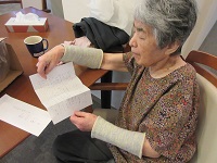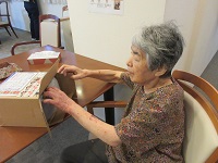 5人姉妹の妹様より届きました!お名前をお伝えすると「そう!OO子よ!」と仰っている。素敵な切手がたくさん貼られて送られてきました。中にはお手紙とお洋服が入っており、熱心に読まれていました。