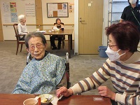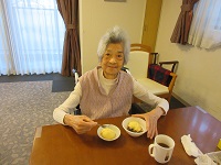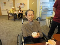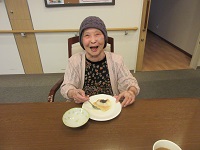 まだ肌寒いため、膝かけとプリンを持ってきていただきました。膝かけはお渡しした途端に膝に置いて気に入られていました。まだまだ朝晩寒いので気を付けていきましょう!