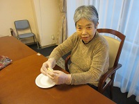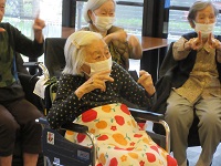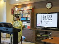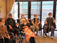 今日は久しぶりに音楽療法の先生にお願いし、今月から木曜日隔週で来てくれることになりました。入居者様の皆さんは楽しみにされていたので喜ばれていました。「その歌知ってる!なんだっけ?」など手を動かしながら歌われていました。今度は20日です。お楽しみに!