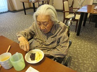「粒あん大好き!好きなだけ使っていいの?」など仰りながら、粒あんを挟んで召し上がっていただきました。とてもいい表情をありがとうございました。