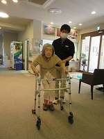 K様のリハビリで歩行リハビリを行ってくれました。歩けてうれしいと話されながら一生懸命な姿をご紹介させていただきます。