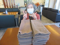 1階ラウンジにA様がいらして、施設で使用しているタオルをたたみをしてくださいました。いつも、お手伝いしてくださりA様ありがとうございます。